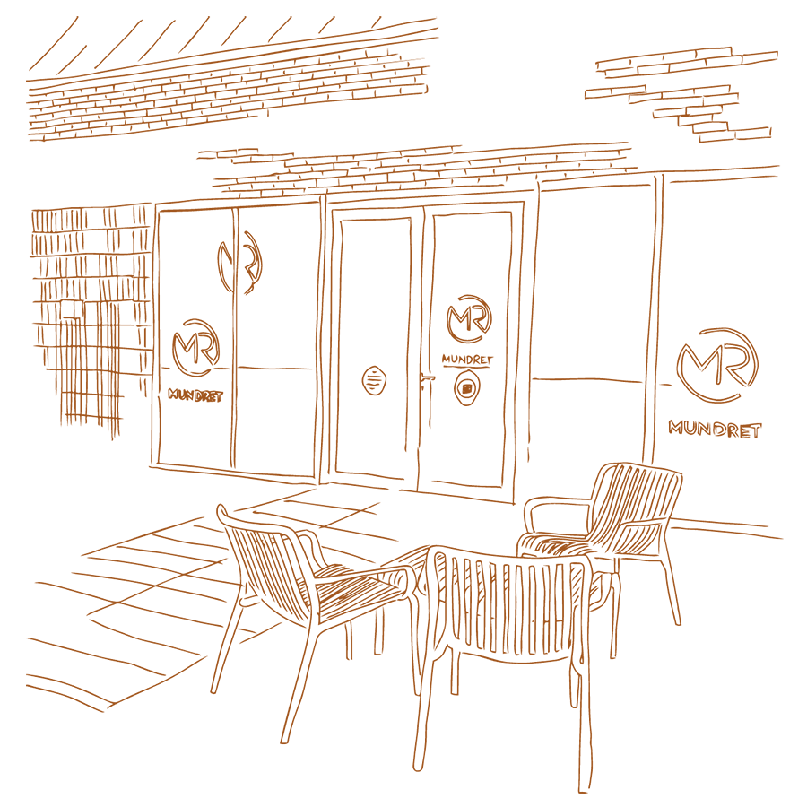 Navnet Mundret opstod i et ønske om at servere små, smagfulde oplevelser uden at alt var vendt sammen på et fad. Vi synes konceptet er unikt og anerledes; og derfor er vi tro mod det. Vi serverer alle mundretter i mundrette størrelser og anretninger – og ikke på fade. På den måde er du som vært også 100% sikker på, at den første gæst ved bordet, får præcis samme oplevelse som den sidste.